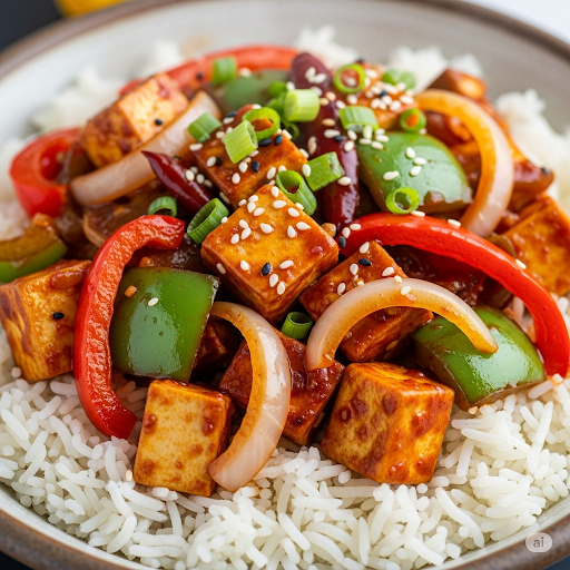 Paneer Tofu Chilli Rice Bowl (Weight Loss)